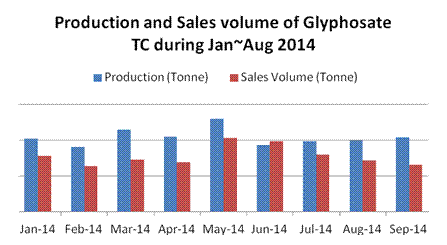 Seem from production and sales, in September, with two more manufacturers operating, output of glyphosate increased by 4.6% MoM, while sales volume declined by 8.8%. The expected increasing exports didn't appear. According to CCPIA, the annual event, AgroChemEx will be held in Shanghai, China in October. Such event will bring up the order quantity and is estimated to be a turning point of the market.